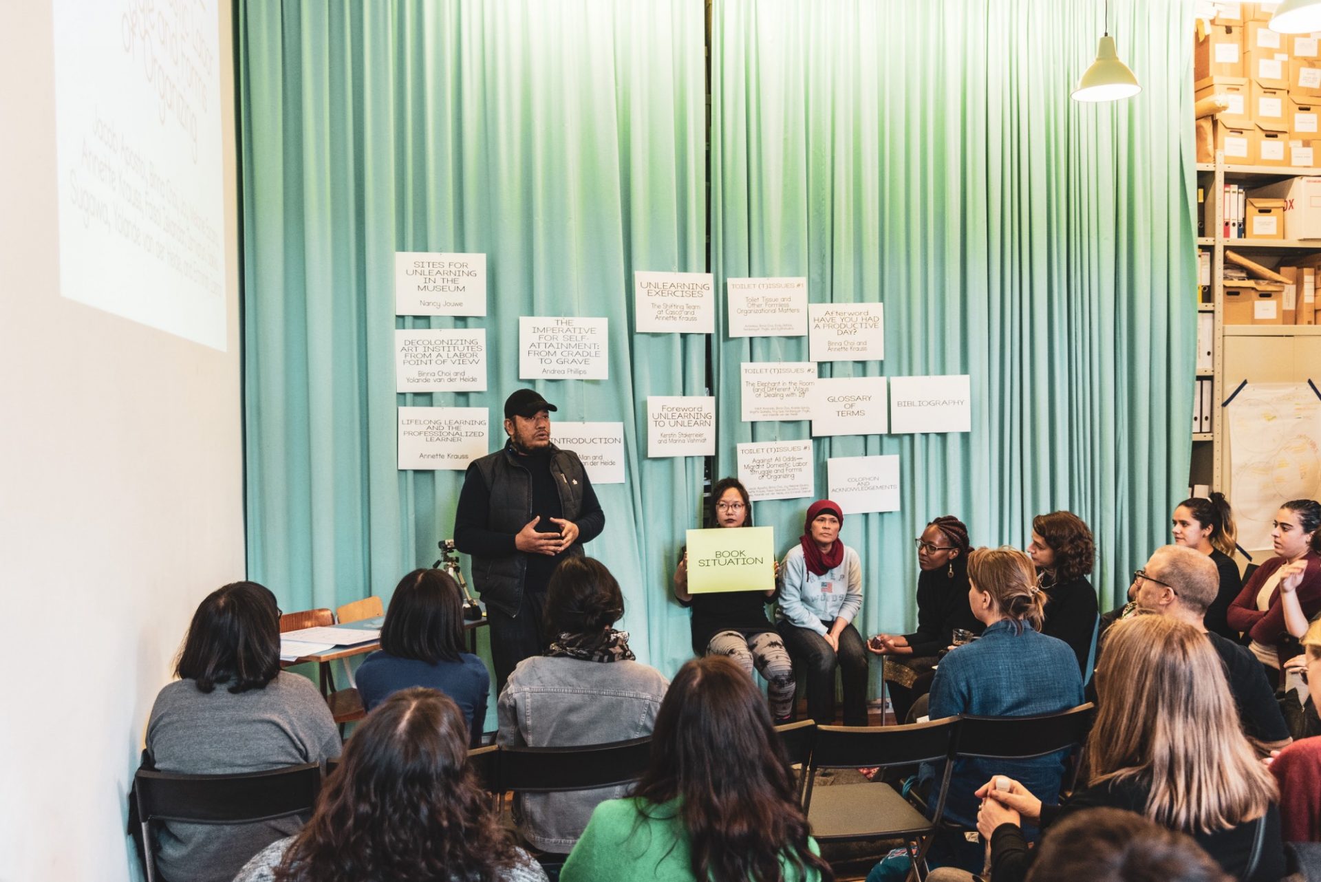 Book situation "Toilet Tissues #3: Against All Odds: Migrant Domestic Labor Struggle and Forms of Organizing" with Faisol Iskandar, "Elephants in the Room," Assembly, Casco Art Institute: Working for the Commons, 2-3 November 2018. Photo: Filippo Giuseppe Iannone